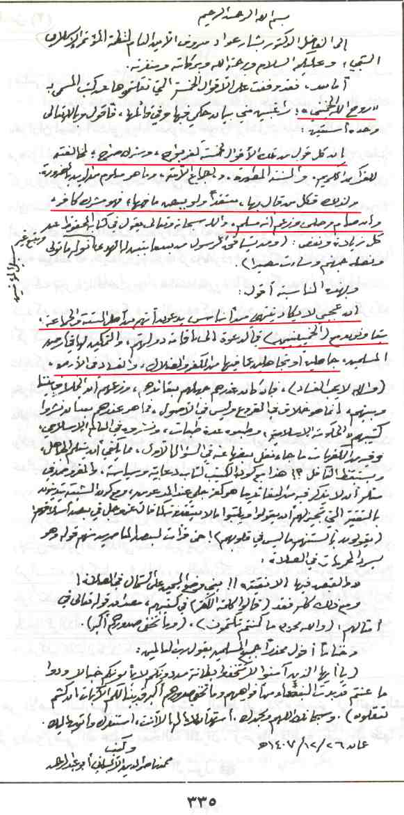 Vërtet, i pashë pesë fjalët që ju i përcollët nga librat e të mbiquajturit “Ruhullah el-Khomejni” duke dashur me këtë që unë t’u sqaroj gjykimin tim për ato dhe për thënësin e tyre. Kështu që them, dhe vetëm prej Allahut të Lartësuar kërkoj ndihmë: